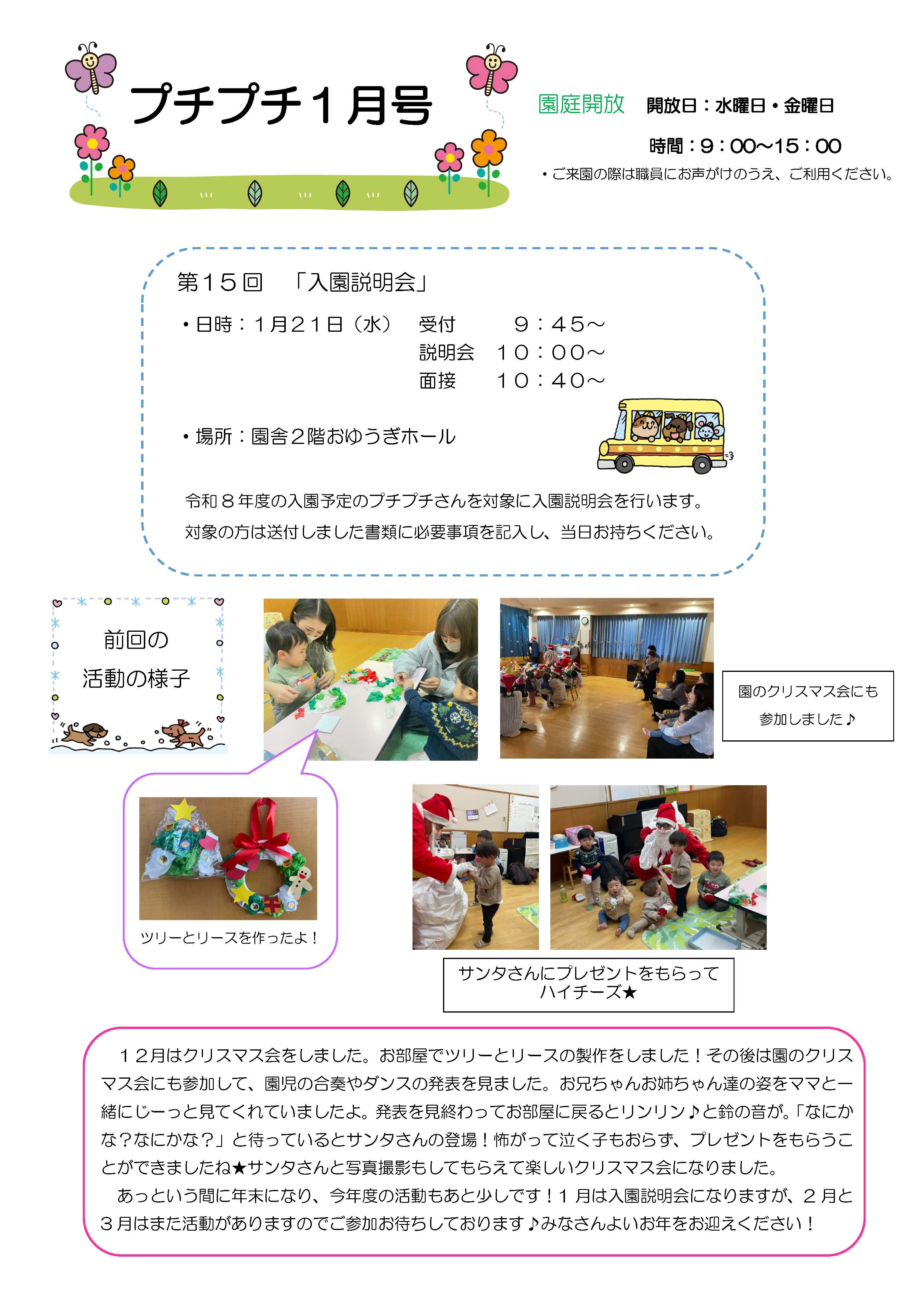 プチプチクラブへの参加予約、園庭解放、子育て相談に